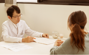 「問診表」をご記入いただき、それに基づいた問診を行います。